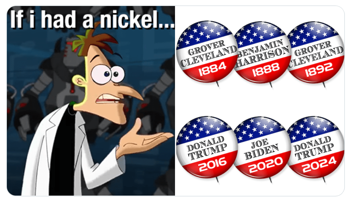 Trump joins Grover Cleveland as the only other president to be elected to nonconsecutive terms. Cleveland did it in 1884 and 1892.